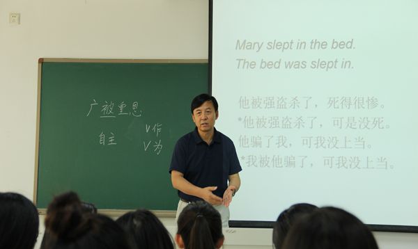 8月17日,刘乐宁教授主要讲解了被动句的中英对比和存在句。刘教授通过举例帮助同学们理解“被”和“by”的区别,并对英文中的被动句式进行分类论述,借助丰富的例子来说明中英文被动句式用法的不同。刘教授指出,被动句的功能不是对事件进行描述,而是强调对被动主语的状态进行描写。因此在日后的实际教学中,我们要让学生正确使用语法点,注意做好中英句式的对比分析,预测学生可能出现的语言偏误,分析其造成的原因并积极寻找解决方案。