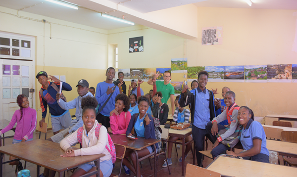 我们所负责的学生是9年级的初中生,他们大多14岁左右。佛得角学生给我的印象是特别的纯真与天然。记得第一堂课,当我打开巨大的地图平铺于地面的时候,我让他们指出中国的位置,可是没有一个学生找对,有的人指到了俄罗斯,有的人指到了阿拉斯加。在他们看来,中国只是一个遥远的国度,一切都陌生的,这也使得每当我向他们介绍中国的时候,他们都特别的好奇。一次为学生介绍中国茶的时候,一个女学生端起茶杯喝下了她人生的第一口中国茶,露出了甜美的笑容,这一幕正好被我拍了下来。