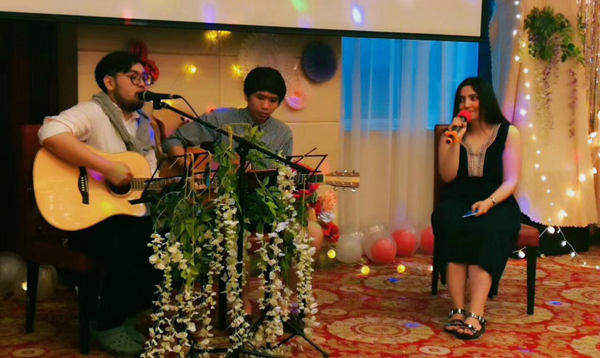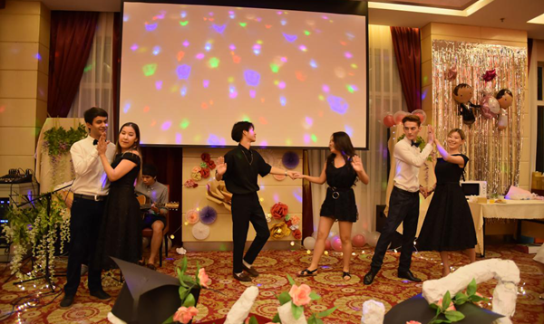 毕业晚会以来自泰国的潘成龙、亚美尼亚的那斯雅,以及博士毕业生Q哥共同演奏歌曲《最浪漫的事》拉开序幕,他们的歌声宛转悠扬,把在场的学生带入到了一种浪漫的氛围中。