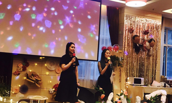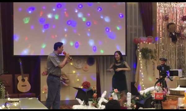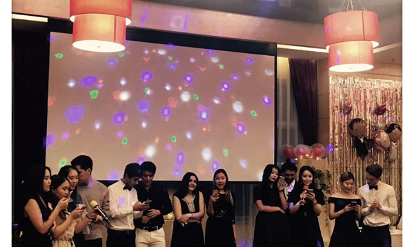 接下来,我们的主持人迪伊娜、和平鸽宣布毕业晚会正式开始。