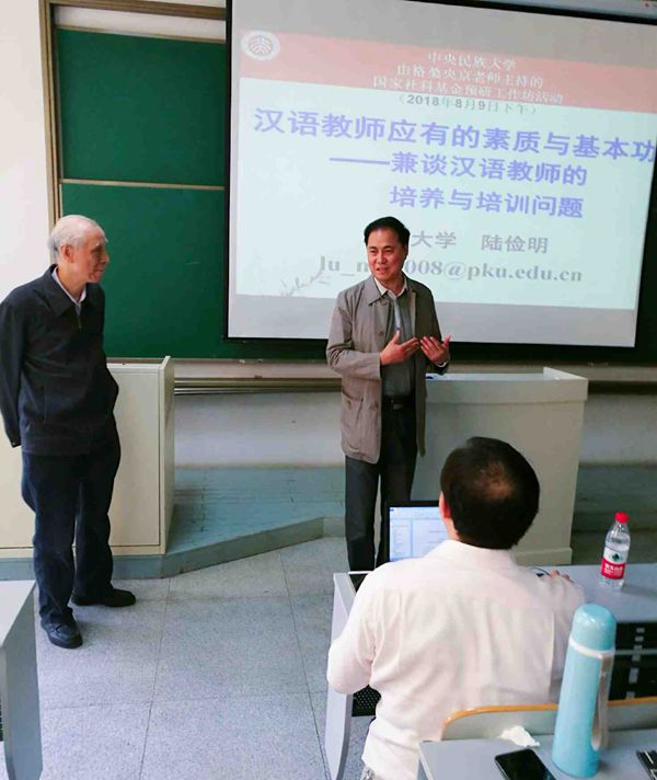 2018年5月9日下午,北京大学中文系教授、博士生导师、国家语委咨询委员会委员陆俭明先生,应我院格桑央京副教授主持的“服务国家对外战略的汉语国际教育专业人才培养实践”之国家社科基金预研坊项目的邀请,在文华楼东区201教室举办了题为“汉语教师应有的素质--兼谈汉语教师的培养与培训问题”的高端学术讲座。william威廉中文官网的中外博士生、硕士生、文学与新闻传播学院对外汉语教学的本科生以及我校其他学院相关专业的同学们两百多人,纷纷踊跃参加了本次高端学术讲座,整个201教室座无虚席,甚至出现了一位难求的情景。