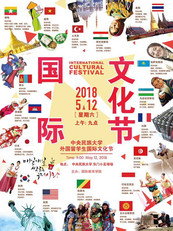 中央民族大学国际文化节以“魅力民大,牵手世界”为主题,旨在展现民大国际williamhill英国官网,拓展中国学生国际化视野,促进中外学生的融合。经过国际学生学生会一个多月的精心筹备,今年的国际文化节在形式和内容上都有了较大的提高,报名参加的国家再创新高,活动内容更加丰富多彩。今年的文化节更多地是由国际学生自己策划,学院给与指导和支持。上百名国际学生积极参与,出谋划策,设计了包括各国歌舞展演、各国文化美食展示、互动游艺抽奖等活动项目。