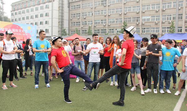 在文艺表演中,国际学生武术兴趣组首先登台表演了长拳和对练。学生们的一招一式渗透着对中国传统文化的感悟。17国学生精彩的服装秀表演拉开了演出的序幕。由哈萨克斯坦学生带来的冬不拉独奏和蒙古学生的马头琴演奏,以及哈萨克斯坦学生、塔吉克斯坦学生和吉尔吉斯斯坦学生各自表演的民族舞蹈都向观众展现了热情奔放的民族性格和开朗豁达民族气质,具有强烈的地区民族特色,欢呼喝彩声不断。优雅多姿的泰国舞蹈《Amazing Thailand》又把观众带入到从传统到现代的美丽国度。八个国家学生带来的小合唱《How far I’ll go》完美地诠释了美美与共和谐共荣的内涵。柬埔寨学生陈玉美用中文演唱了西哈努克作词的歌曲《怀念中国》,唱出了高棉人民对中国朋友的热爱和尊敬。乌兹别克斯坦学生表演的小合唱《欣起了你的盖头来》,熟悉的旋律结合了本国语言,听起来更具民族韵味。十多名身着红色越南传统服饰的同学伴着《美丽的越南》的歌声在舞台上翩翩起舞摇曳多姿。 美国学生和平鸽表演的独舞《印象》很好地将舞蹈和武术相结合,举手投足间潇洒飘逸,极富视觉感染力。两位刚果布学生表演的击鼓,节拍明快鼓点强烈,让观众仿佛置身于原始非洲大地。韩国学生伴着动感节奏表演的舞蹈,青春时尚活力四射,赢得了观众经久不息的掌声。缅甸学生集体带来的传统服装走秀,让我们惊叹于缅甸各民族服装的多彩绚丽。数十名国际学生走下舞台一起跳起了舞蹈 ,热烈激情的舞步感染了现场的每一个人,伴着激扬的节奏演出渐入高潮……