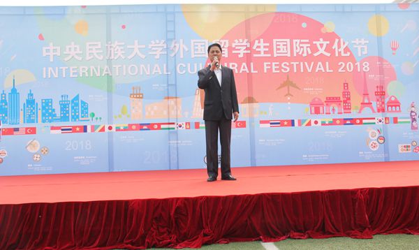 周铁海书记首先致开幕词。他在致辞中说中央民族大学国际文化节已经举办四届,此项活动为民大国际学生展示本国文化搭建了一个良好的平台,促进了中外学生的交流、了解和沟通。为民大美美与共的多元文化氛围增添了浓墨重彩的一笔。他预祝第四届国际文化节圆满成功。