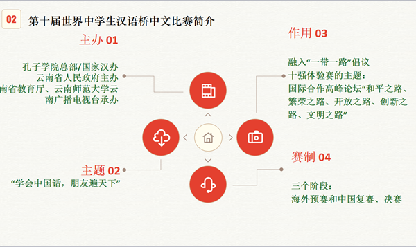 本届“赛事分析类”汇报展示是对“第十届汉语桥世界中学生中文比赛”的分析。同学们从该中文比赛的历史、赛制、内容、特色、存在不足等多方面进行了深入全面的分析,为今后国际学生语言文化赛事活动的组织和实施提供了很好的参考。