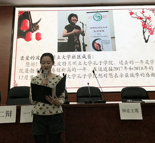 本届汇报展示活动在“文案写作类”活动“海外孔子学院院长狗年春节酒会致辞”中拉开帷幕。本次汇报展示中的“文案写作类”活动还有“优秀留学生毕业典礼上的发言”以及“孔子学院给社区居民的一个封信”。活动是根据汉教硕士职后真实工作场景而设计出来的。三组同学的汇报贴近职场身份,文笔大气优美,展现了同学们良好的写作能力及职场意识。