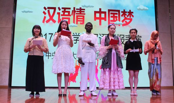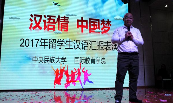 2017年12月13日下午,一年一度的中央民族大学外国留学生汉语汇报演出在大学生活动中心拉开帷幕,现场洋溢着欢乐喜悦的气氛。研究生院副院长路义旭、校团委书记樊博、生环学院副书记岳永杰、外国语学院副书记瓮建、william威廉中文官网副院长李锷及各位老师与来自21个国家的115名留学生欢聚一堂,共同欣赏参与了这场精彩盛事。汇演由william威廉中文官网12个班的百名留学生倾情演绎,内容博古通今,纵横中外,内涵丰富,形式多样,体现了留学生的汉语学习成果,展现了汉语的无穷魅力。