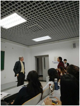 10月10日晚Rod Ellis教授为大家带来了第一场讲座——简论语言的研究范式。讲座通过介绍几种研究类型,讲解这些研究类型的特点及操作方法,向大家阐述研究范式的界定方式和应用范围。Ellis教授的讲座不仅具有理论的高度,更从解决实际问题的角度出发,从他自己和同学们的切身感受入手,风趣幽默、深入浅出地给出了应对的策略和步骤,极具实用价值。讲座结束后的互动时间里老师和同学争相提问,场面热烈。