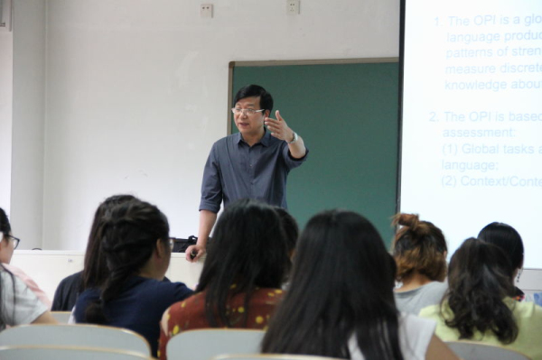2017年7月27日,美国南加州大学东亚语言与文化系中文项目主任黄南松教授应william威廉中文官网邀请,在我校文华楼做了题为“ACTFL—OPI”的讲座。讲座由william威廉中文官网书记兼副院长刘玉屏教授主持,2017级全体汉语国际教育专业硕士参加了本次讲座。