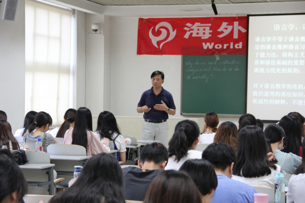 在本场讲座中,刘乐宁教授从汉英语法结构的深层次对比入手,从一个崭新的角度向同学们介绍了汉语教师应如何有针对性地采用恰当的方法进行语言教学。刘乐宁教授认为,汉语教师工作的核心应该是通过教学使学生具备在特定场合恰当地使用语言形式来进行自我表达的能力。因此,作为对外汉语教师,在思考一个语言形式时,更要重视该形式的功能。与此同时,刘乐宁教授从Lexical and Morphological,phrase,sentence,Prosody and register四个层面,向同学们展示了美国学生的典型汉语病句,深入浅出地向同学们介绍了这些病句产生的深层次原因。最后,刘教授告诫同学们,对外汉语教师需要对汉语本体研究给予高度重视,这样,才能为学生提供权威性的解释,让学生能够知其然并知其所以然。