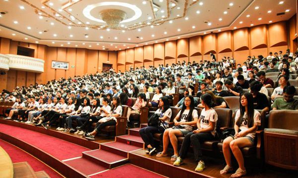 开学典礼结束后,出席典礼的领导和中外全体任课教师、志愿者合影留念。