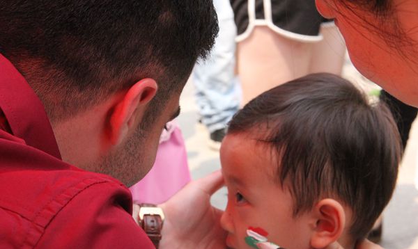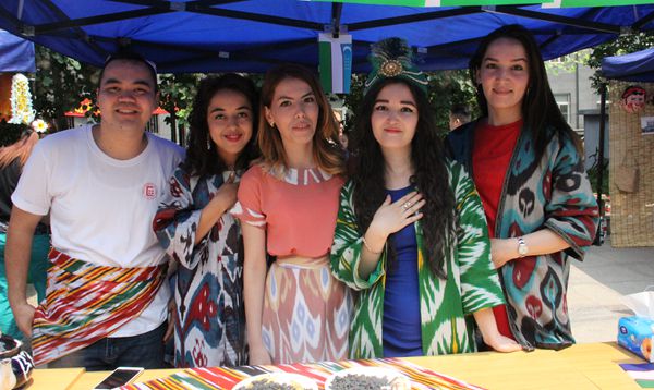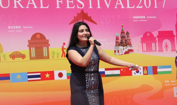 台上表演刚结束,台下各国文化展台立即聚集了热情的观众。越南的抢扇子、日本的游戏折纸、哈萨克斯坦的掷羊柺、韩国的韩服穿着、缅甸的美容品达那卡试用……吸引了众多参与者;越南的春卷、亚美尼亚的葡萄酒、柬埔寨的柬饮、 日本的冰激凌、蒙古的奶制品、缅甸的奶茶……让参加的师生大快朵颐;展位布置异彩纷呈,打着花伞的越南人偶、俄罗斯套娃、蒙古马鞍、泰国折纸、还有在现场搭建的哈萨克毡房……