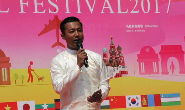 今年国际文化节上一带一路沿线国家的文化展台唱起了主角,占据了半壁江山。缅甸同学龙威在演出中动情地朗诵了为中缅友谊谱写的诗歌,哈萨克斯坦更是将两国元首合影摆放在显要位置……