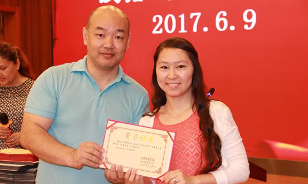 随后,李锷副院长为各班获得“优秀学生”称号的学生颁发了荣誉证书。各班班主任老师和邓秀均老师一起为留学生颁发结业证书,并赠送纪念礼物。最后,参加结业式的所有教师和学生一起合影留念。