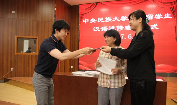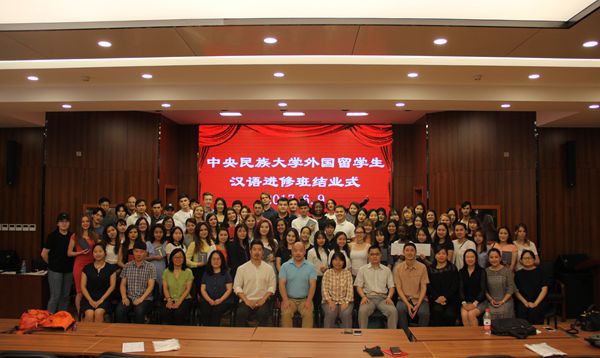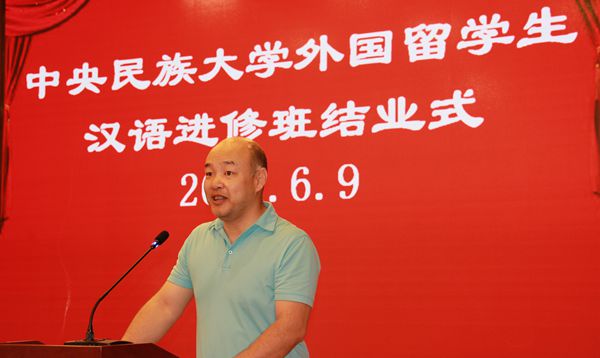 中央民族大学william威廉中文官网2017年春季汉语进修生结业式于6月9日上午9点在中央民族大学知行堂举行。william威廉中文官网副院长李锷老师、国家民委监督检查司综合处副处长周轶人、汉语系主任邓秀均老师、各班班主任和即将结业的60多名外国留学生出席了结业式。结业式由william威廉中文官网留学生办公室主任买力克老师主持。