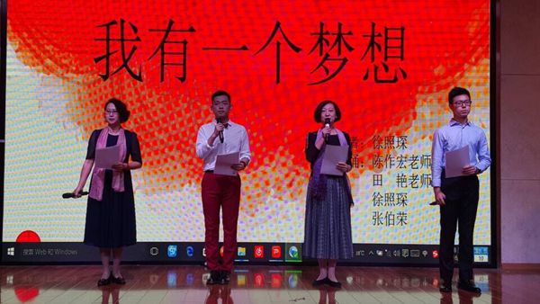 陈作宏老师,田艳老师和我院学生张伯荣、徐照琛声情并茂的师生朗诵《我有一个梦想》,那慷慨激昂的语调点燃了同学们内心的情感,深深地被感动了。