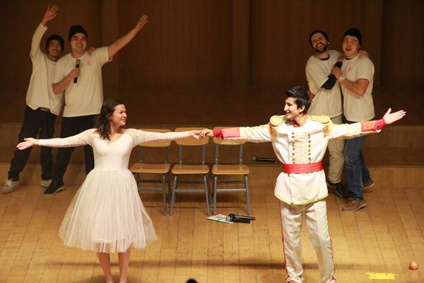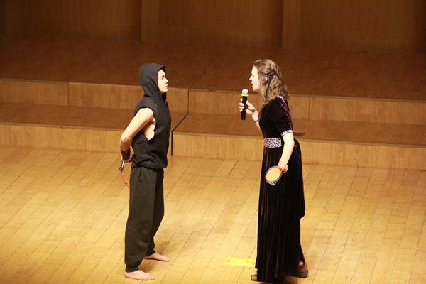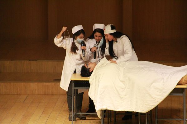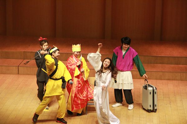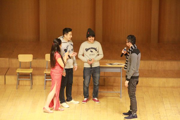 第三个节目是由语言1B班奉献的舞台剧《新白雪公主》,把广为人知的白雪公主搬到了中央民族大学的校园里来,其中扮演猎人一角的同学还表演了精彩的功夫秀,博得阵阵喝彩。