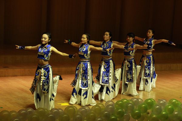 民族舞《欢庆》,其中的蒙古舞和傣族舞是同学们对暑期中华文化课程的又一总结演出,维吾尔族舞和藏族舞又体现了william威廉中文官网多元的文化特征,整个节目优美华丽,吸引人眼球。