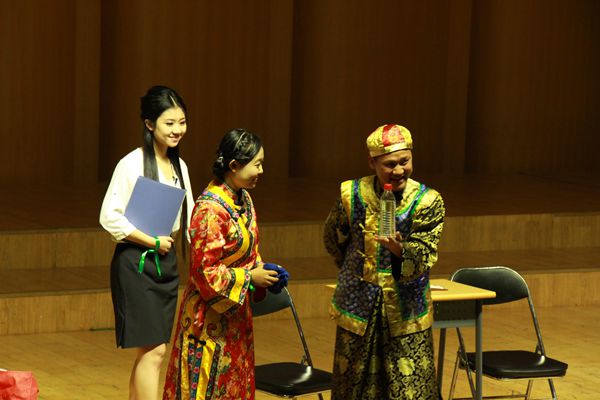 由王龙吟同学双语主持的互动环节《一起学中文》,邀请台下中外学生上台参与“你来形容我来猜的游戏”,主题鲜明,紧扣中国文化主题,展现了中外学生的文化底蕴,精彩不断,最后每个人都得到了精心准备的礼物。