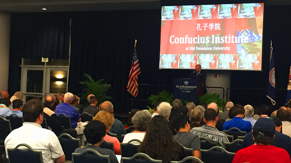 我校与美国欧道明大学(Old Dominion University简称ODU)合作共建的孔子学院,位于弗吉尼亚州诺福克市。该市是世界最大煤炭输出港和美国最大的海军基地所在地。