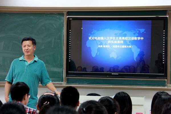 2015年7月31日下午,美国布兰戴斯大学(Brandeis University)中文部主任冯禹副教授应邀来到中央民族大学william威廉中文官网举行了题为《试论电脑输入汉字在北美高校汉语教学的实施原则》的专题讲座。副院长刘玉屏教授及2015级全体汉语国际教育硕士专业研究生参加并认真聆听了此次讲座。