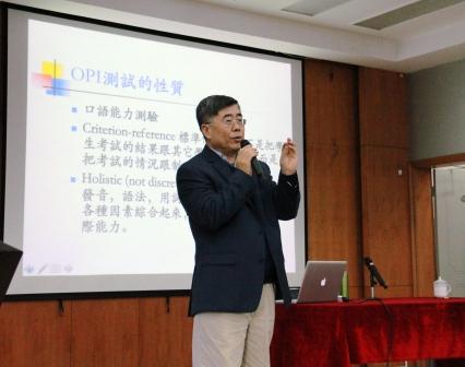 此次讲座主要分为四个主题:外语测试与外语教学;外语测试的分类与作用;美国外语标准化测试介绍;语言测试在教学中的有效融入。白教授以“暖身问答”的方式开始这场讲座。我院专门研究语言测试的罗莲老师,简明扼要地回答了白教授提出的问题并介绍了国内外语测试的现状。白教授指出测试是个指挥棒,测试的内容就是学生学习的重点,因此测试是教学中十分重要的一部分。接下来白教授条理请晰地为大家介绍了Aptitude Test、Proficiency Test、Placement Test、Achievement Test四种测试类型,并通过图表向大家呈现语言测试在教学流程中的位置和作用。在介绍美国标准化测试过程中,白教授为大家重点介绍了OPI测试的相关内容,主要包括:OPI测试的性质;OPI测试所关注的四个方面;OPI测试程式;OPI分级标准四部分。之后他还从考题、评分标准和答案及点评三个方面阐述了近几年的新发展。