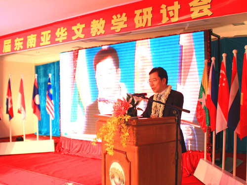 在随后召开的第十届东南亚华文教学研讨会上,吴应辉教授做为从中国大陆特邀的两位专家之一,以《东南亚国家华文教育问题的现象、本质、措施与机遇》为题做了大会报告,引起东南亚各国与会侨领的强烈反响。