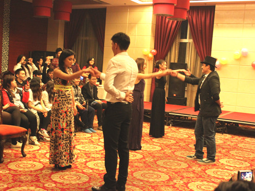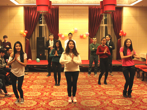 此次晚会由留学生们自编自导自演,本科三年级的何友丽(印尼)与泉涟漪(美国)担任主持。李院长的祝词拉开了晚会的帷幕,随后的集体表演、个人才艺展示、游戏、颁发“HSK优秀奖”、抽奖等各个环节更是高潮迭起。
