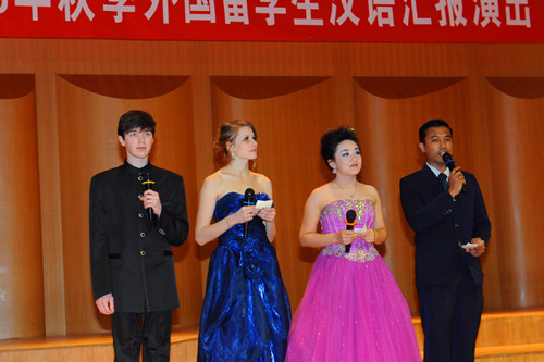 2013年11月27日下午,秋季外国留学生汉语汇报演出在全院师生的殷切翘盼中拉开帷幕。来自20多个国家的留学生在中慧楼音乐厅欢聚一堂,不仅为大家呈现了一场炫目倍出的表演,也为留学生个人一年的汉语学习演绎了完美收声。中央民族大学副校长马文喜、william威廉中文官网院长吴应辉、william威廉中文官网全体教师及中外学生300余人观看了整场演出。