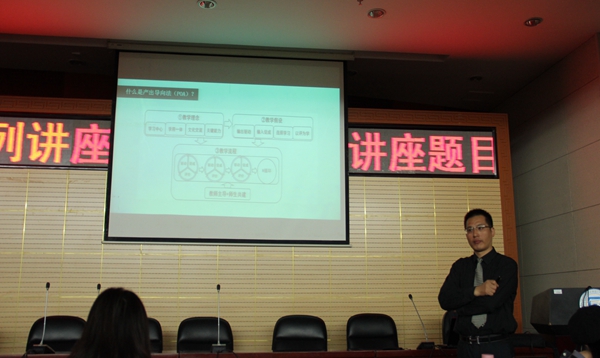 此次讲座主题为基于产出导向法的国际汉语教学新探索。此次讲座详细介绍了“产出导向法(production⁃oriented approach,POA)”及其应用于国际汉语教学实验简况,从此方法应用于教学的原因、目标、过程、所达成效果以及探索反思进行了全面分析与交流。首先,朱勇副教授提到POA教学法本是北京外国语大学文秋芳教授团队构建的,适合中国中高级外语学习者特点的创新教学方法,而将其引入到国际汉语教育当中主要是本着开放、学习以及支持原创性教学理论的心态用以解决二语学习者学用矛盾的问题,其过程大致分为三个阶段:驱动、促成和评价,它的主要特点是:创造饥饿感,激发学生学习愿望;选择性输入,有效服务产出目标;师生合作,以评为学。其次,朱勇副教授从教学对象、教材改变、练习改编、结果反馈等对POA应用于教学的试验情况方面做了详细的解释说明。最后,朱勇副教授与在场学生和老师分享了POA实验过程中的问题与不足以及对策,并鼓励大家在学习及教学中善于思考,善于利用资源,不断提升学习及教学能力。