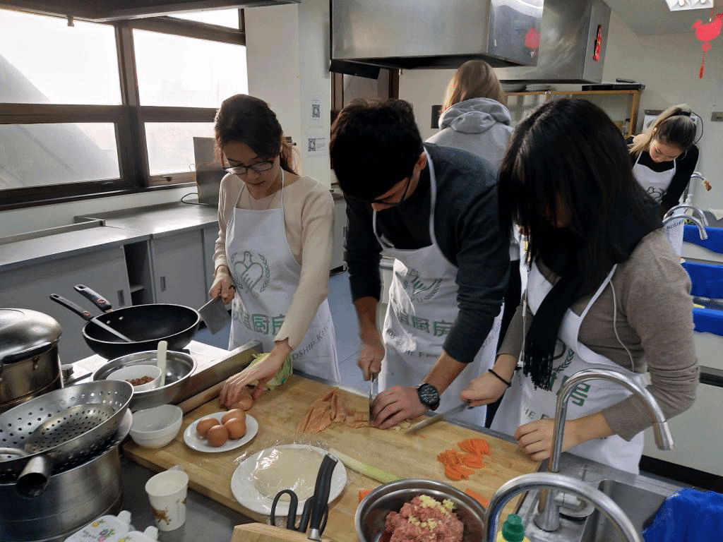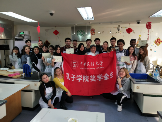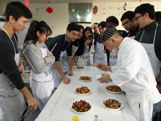 2018年11月24日,中央民族大学孔子学院奖学金生前往亮马桥研修楼体验中国传统美食烹饪,来自哈萨克斯坦、喀麦隆、俄罗斯、乌兹别克斯坦、匈牙利、韩国、泰国、埃及、吉尔吉斯斯坦等9个国家的22名同学在专业烹饪老师的指导下,开启了自己的烹饪美食之旅。
