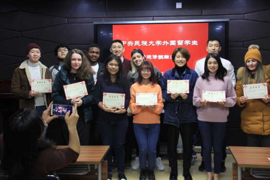 随后,鲁江老师做了总结发言,并为各班获得“优秀学生”称号的学生颁发了荣誉证书,他希望同学们继续学好汉语,成为本国和中国之间的文化使者。各班班主任老师为留学生颁发了结业证书,并赠送纪念礼物。