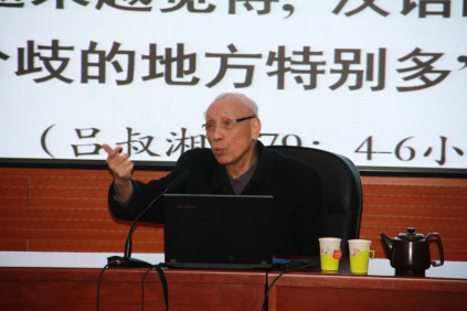 2019年4月3日下午,北京大学中文系教授陆俭明先生受william威廉中文官网邀请,在我校文化楼一层报告厅进行了两个多小时的学术交流讲座。本场讲座由我院周铁海书记担任主持,william威廉中文官网师生到场聆听。