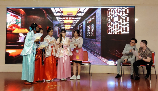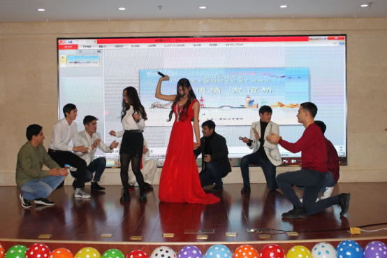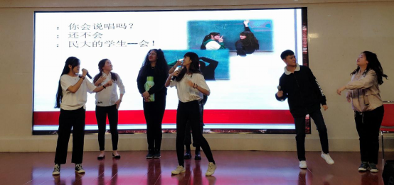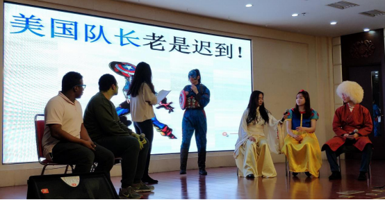 语言生5班同学尽情表演,他们的节目——《假如电影人物都在民大学习汉语》以汉语为桥梁沟通古今中外,展现出的丰富想象力令人拍案叫绝,典型的汉语用词分析尽显其高超的汉语水平。