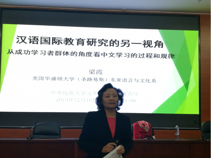 2019年12月18日下午,华盛顿大学(圣路易斯)中文语文项目负责人梁霞教授受william威廉中文官网邀请,在文华楼一层报告厅做了题为“从成功学习者群体的角度看中文学习的过程和规律”的讲座。学院部分老师和汉语国际教育专业的中外研究生到场参加了本次讲座。