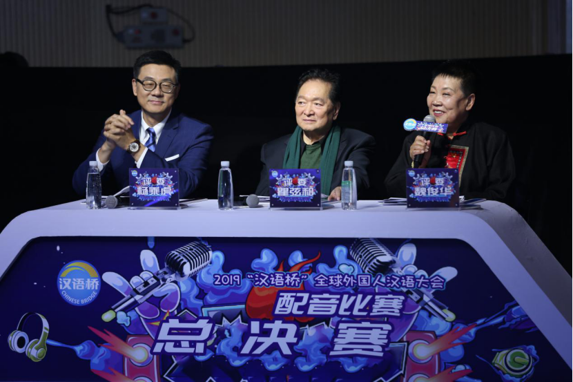 2019“汉语桥”全球外国人汉语大会——中文影视作品配音比赛总决赛于12月20日在华远企业中心C座演播厅举行。由杨乘虎、瞿弦和、魏俊华三位重量级老师组成的评委团,将对选手的表现做出点评,并决定选手的去留。