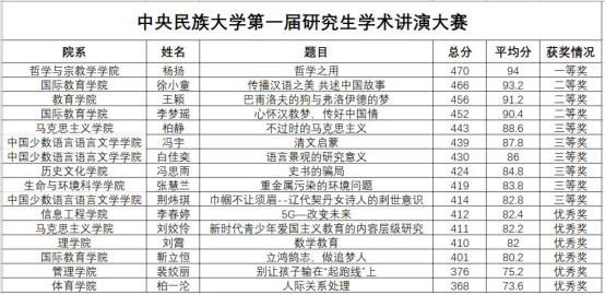 在这个注定不平凡的夜晚,各位同学倾情的学术分享是属于每一个人的蜕变之程。通过本次大赛,大家对汉语走出国门,走向世界有了更深的理解,提升了我院的办学质量,为今后的教学与研究提供了借鉴意义,本次学术演讲大赛是中央民族大学首届研究生学术讲演大赛,充分体现了各院系研究生的风采。