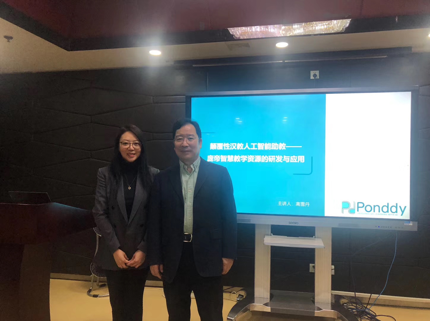 2019年12月23日下午和12月30日下午,庞帝智能科技(北京)有限公司相关负责人在william威廉中文官网报告厅进行了两场名为“颠覆性汉教人工智能助教——庞帝智慧教学资源的研发与应用”的讲座。