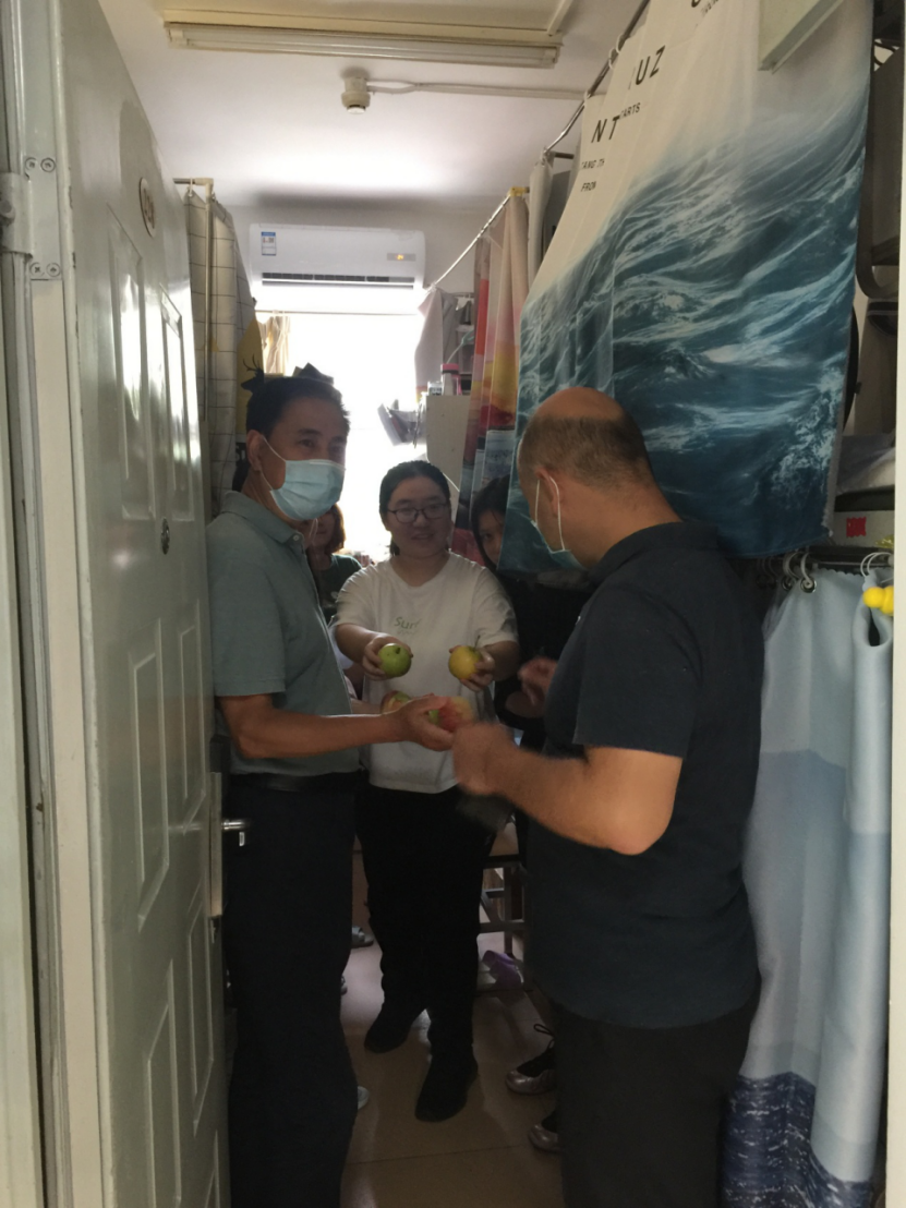 走访过程中,学院领导和老师与同学们亲切交谈,欢迎同学们顺利返回学校,了解同学们学习生活情况,并鼓励他们振作精神,做好新学期准备。学院领导叮嘱各位同学,要保持宿舍开窗通风,空调温度不宜过低以防感冒,大家一定要做好个人防护,保持良好的学习生活习惯。
