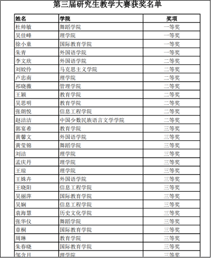 2020年6月1日,中央民族大学成功举办第三届研究生教学大赛。本次教学大赛旨在为有志于从事教育事业的研究生提供学习交流和积累教学经验的机会,培养研究生发现问题、分析问题和解决问题的能力。本次比赛通过线上提交研究成果视频和研究报告、专家评选的方式进行。大赛共有来自外国语学院、管理学院、理学院等13个学院的51位选手参加,经过三名一线教学专家的严格评审,最终共28位选手获奖。