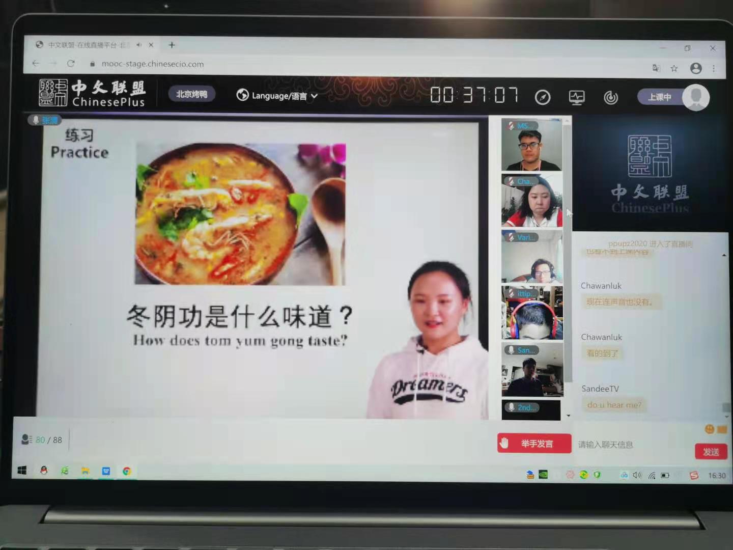 谷陵老师首先用流利的泰语问候同学们,她叮嘱同学们要尽快熟悉线上的平台,积极与老师互动。谷老师还向同学们介绍了每节课程的主讲老师。