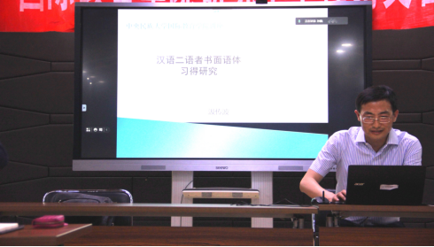 讲座伊始,汲传波教授首先介绍了何为语体以及语体、风格、语域、文体等相关概念的差异,并以简明生动的例子阐明了语体语法。接着,汲老师为大家简要梳理了汉语作为第二语言教学关于语体习得研究的大致脉络和重要成果,对汉语学习者书面语作文“口语化”倾向的原因进行了细致分析。随后,汲教授以韩国梨花女子大学学生的汉语学术论文为例,分享他的相关研究成果。最后,汲教授就“汉语国际教育学科性质”这一问题分享了自己的看法。