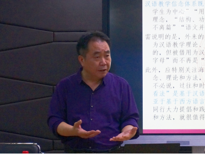 在本次讲座中,李泉教授首先向在场师生阐释了教学信念的内涵,并充分例证了教学信念如何全面影响教师的教学行为。李泉教授从共性与个性,宏观、中观与微观的角度,通过大量生动的教学案例,幽默风趣地阐述了国际中文教育的核心信念的构成,如目标观、语言观、学生观、教师观、方法观、汉语观、教材观、语法观、语音观、偏误观、备课观、课型观、汉字观、背诵观、管理观等。李泉教授指出,教师应在借鉴西方教学理论的基础上,在实践中探索适合汉语汉字特点及教学规律的教学理念与方法。讲座结束后,李泉教授还耐心细致地回答了在场同学的问题。与会师生表示,李泉教授的讲座风趣幽默、案例丰富、观点新颖,大家从中受益匪浅。