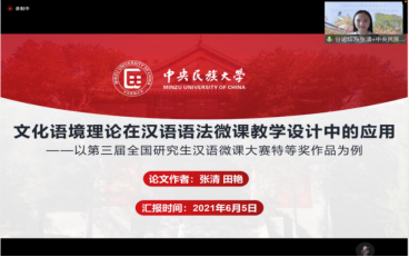 2021年6月5日,由北京大学对外汉语教育学院主办的2021对外汉语博士生论坛暨第十四届对外汉语教学研究生学术论坛于线上召开。我院张华杰、张清、陈雨微和吴倩4名硕士研究生在此次论坛作了主题报告。