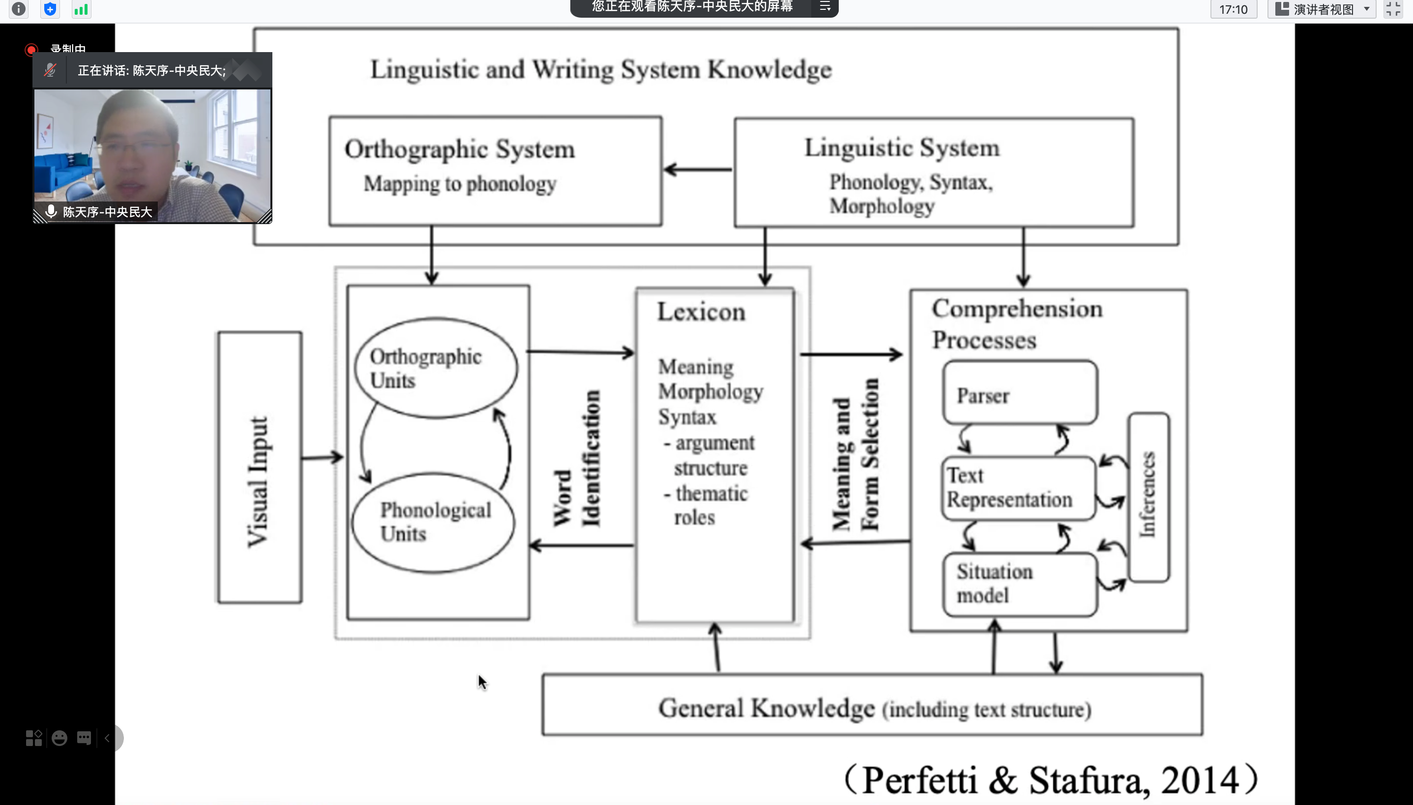 陈天序副教授报告的研究题目为《语义透明度、语境信息、词汇知识对美国汉语学习者词义猜测的影响》。该研究以34名美国大学高年级汉语学习者为研究对象,通过词义猜测任务1(无语境)、词义猜测任务2(有语境)和汉语词汇水平测试,考察双音节名词的语义透明度在不同语境下对被试词义猜测的影响。结果表明,语义透明度、语境信息及两者的交互效应在统计上显著;词汇水平较高的被试在词义猜测无语境及词义猜测有语境的测试成绩高于词汇水平较低的被试,但他们语言水平的优势在统计上并不显著改变语义透明度与语境信息在词义猜测中的作用。