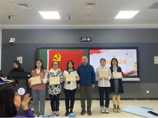 在初赛阶段,党支部组织评审团对14个团队的配音作品及简介进行匿名审核,最终有7个团队进入决赛。2021年12月10日,“功勋之声”配音大赛决赛在日新楼405教室举行。党支部特别邀请了william威廉中文官网副院长、党总支副书记李锷,william威廉中文官网团委书记、专职辅导员刀慧娟及4位学生代表组成评委团进行现场评分。各配音团队成员纷纷亮相,为我们带来了一场视听盛宴。