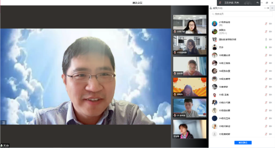 副院长陈天序关心同学们的身心情况,并就现阶段教学情况进行总体介绍。“在我上课的时候,同学们的虚拟背景都很丰富,虽然因为疫情大家不得不闷在家里上网课,但这些小小的调剂手段可以让大家更欢乐一点。”陈院长希望每个同学都能感受到“欢乐”这个概念,即使在压力之下,希望大家的身体和心理也能保持一个良好的状态。此外,陈院长也对学院学生的培养问题进行了说明,再次强调“知行研+国际化”的培养理念,希望大家能够具有国际化的视野。