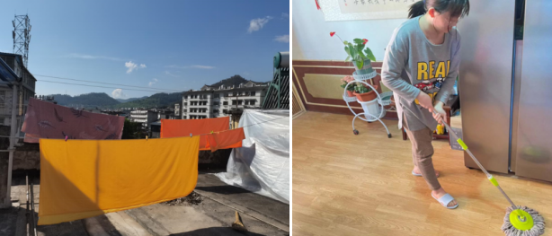 2021级本科生衣芷瑶:疫情期间不能返校给了我更多的在家进行家务劳动的机会,看似平常的拖地在一整套下来我的腰也直不起来,感受到了父母平时的辛苦,以后我除了拖地以外,还要多多帮助父母承担起家务劳动的责任,珍惜劳动成果,在劳动中获得快乐。
