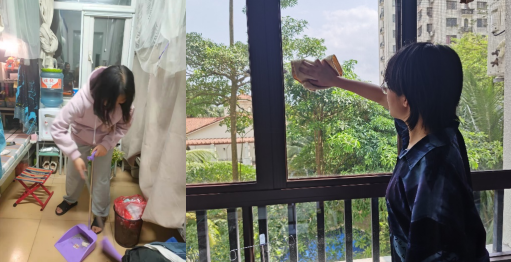 在第一场专题系列活动“劳动之家务清洁”中,同学们通过亲身感受,体会家务生活的繁琐,更加能够关注到家务事的细枝末节,强化同学们参与家庭劳动的意识,在疫情居家期间为父母分忧,真正成为家庭的主人。