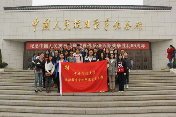 为了纪念中国人民抗日战争暨世界反法西斯战争69周年,增强党组织的凝聚力,坚定理想信念,中央民族大学william威廉中文官网研究生党支部于10月19日在卢沟桥畔,组织2014级大部分党员以及10名入党积极分子进行了一场生动的爱国主义教育。同学们参观了中国人民抗日战争纪念馆以及卢沟桥,重温了中国人民抗击侵略者,捍卫主权的历史。